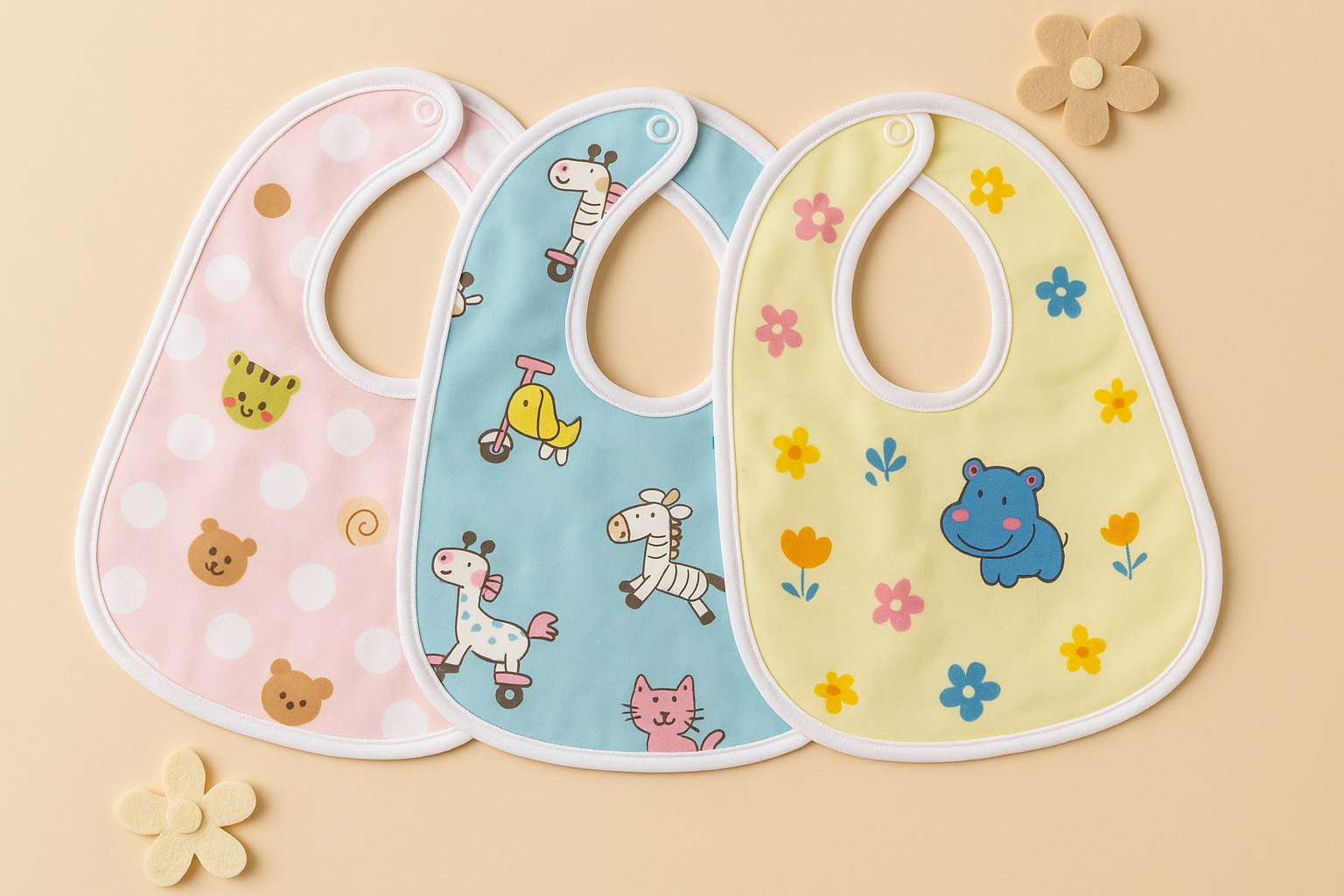 Crafted to withstand daily use, these bibs are sturdy, reusable, and a smart long-term investment.